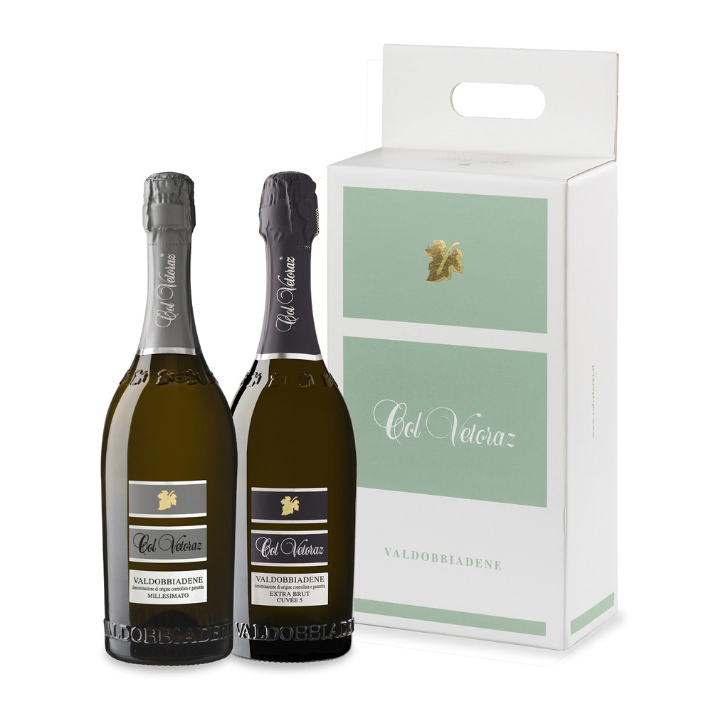 Confezione da 2 bottiglie: Valdobbiadene DOCG Extra Brut Cuvée 5 e Valdobbiadene DOCG Millesimato Dry (duplicate)