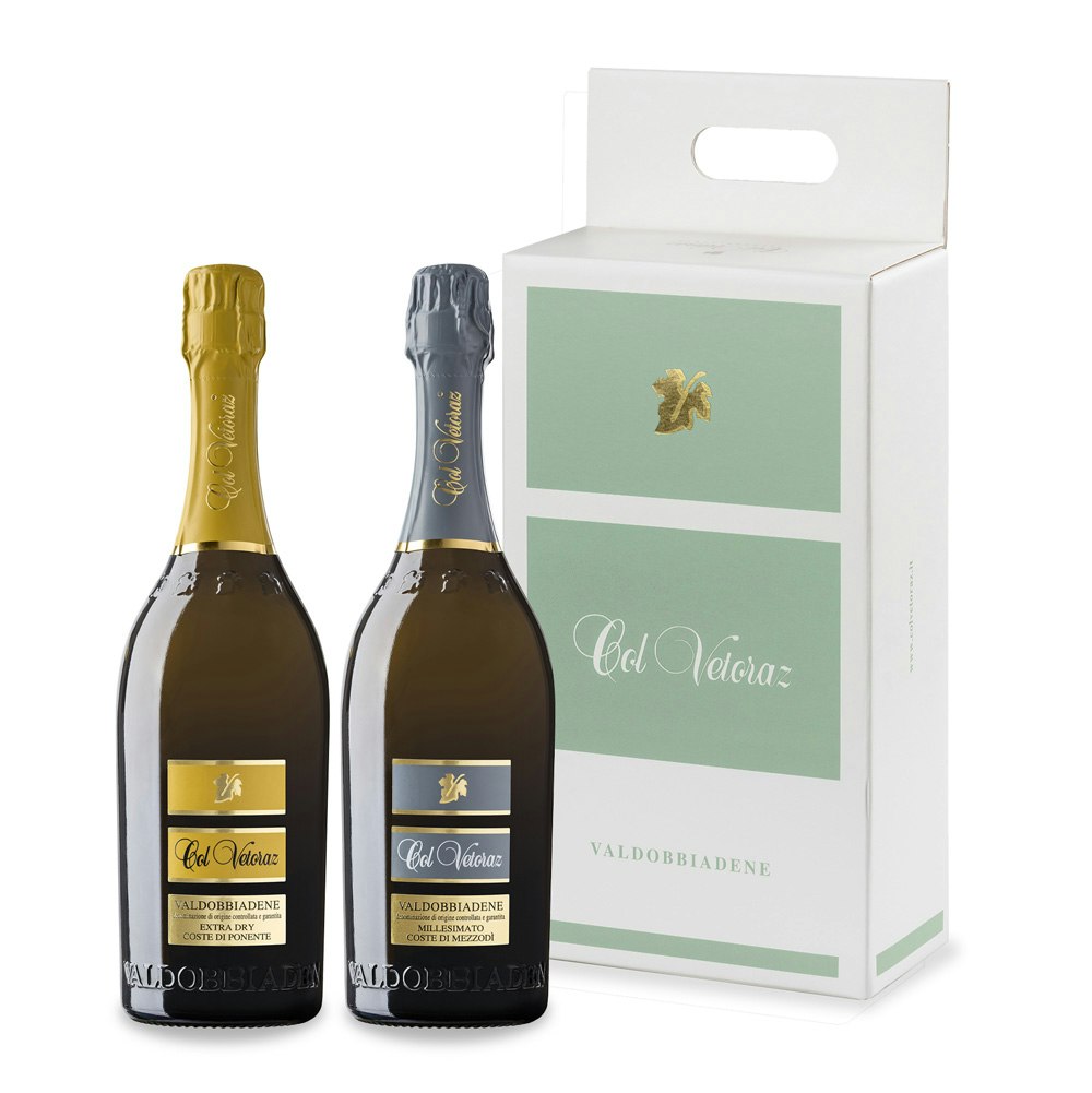 Confezione da 2 bottiglie: Valdobbiadene DOCG Extra Brut Cuvée 5 e Valdobbiadene DOCG Millesimato Dry Coste di Mezzodì